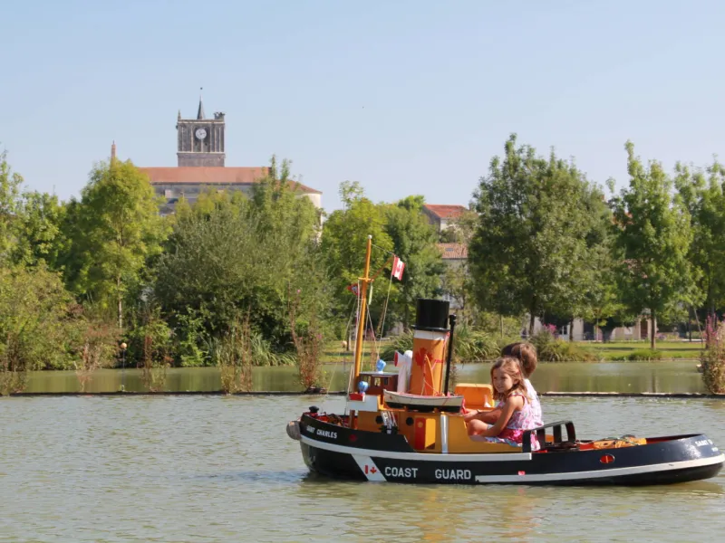 The miniature harbour was born in 1987 from the imagination of a shipwright. This enthusiast, who invented the concept, created a veritable fleet of 17 miniature boats. You can climb aboard and steer these unique, original models and sail among the many settings recreating a real harbour, in miniature! A permanent exhibition traces this family adventure and shows the shipbuilding techniques used. On the island of old-fashioned fairground rides, rediscover the pleasures of yesteryear's festivals on authentic attractions from 1920: carousels, swings, flying chairs, pedal cars... and enjoy the large inflatable playground "les mondes marins" (the marine worlds).The sailors' bistro offers ice cream, crêpes, waffles... Snack bar service every lunchtime when the park is open (except September). Île de la Grenouillette is located at the foot of the village of Saint Savinien sur Charente, a small town of character and artists' village.
