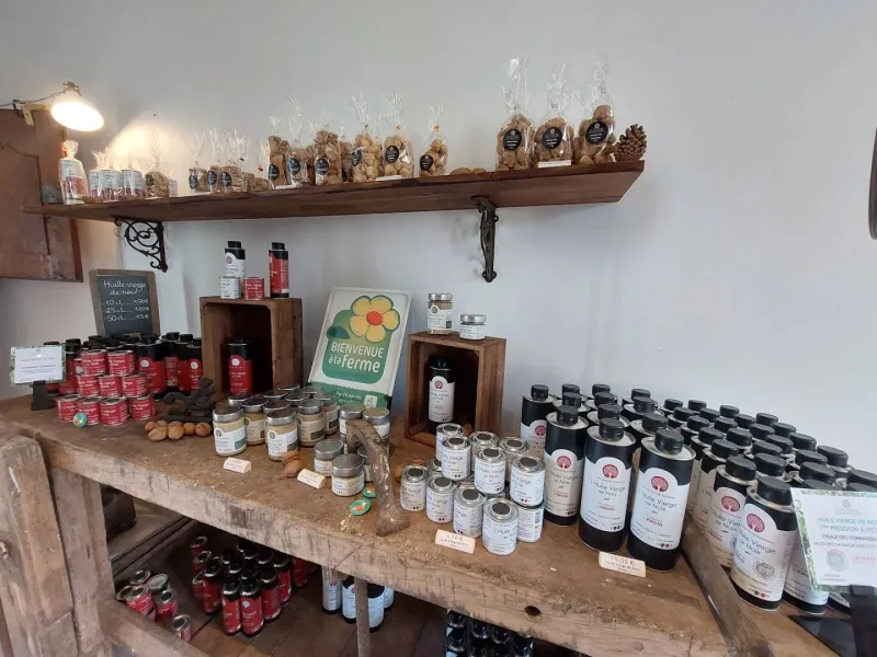Come see us ! We welcome you all year round for private tasting tours, discovery trails for children, gourmet snacks at the farm or simply your purchases of local products. Our shop offers a wide range of delicious local specialties and of course all our nut-based products: nut oils, mustard, biscuits, chocolates, caramels...From June, book your picnic under the walnut trees and come and take a regenerating break in the open air, and we will take care of preparing a nice basket of local and homemade products for you! The ideal break in a long day of visits in Charente!