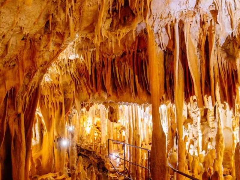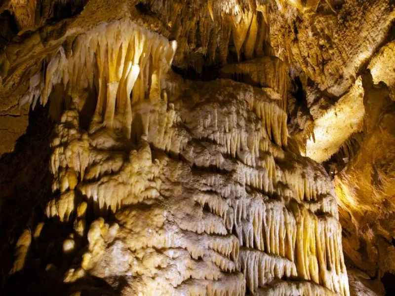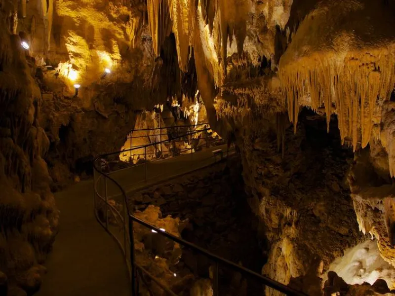 It is the largest underground network in the Périgord. More than 13 km were explored to date. Rainwater percolation created a beautiful natural scenery. You will admire impressive flows of calcite deposits, delicate stalactites, transparent draperies and countless stalagmites. Prehistoric paintings were discovered. Made more than 19,000 years ago, they represent the authentic testimony of our ancestors’ art. Some of them, such as the rotunda of horses, are covered with a thin layer of calcite which gives them their particular bluish hue. You will admire as well the bison and sorcerer scene, one of the rare human representations in prehistoric art. You will enjoy outside a new discovery footpath about fauna, flora and climates from Prehistory until the Present.Localisation